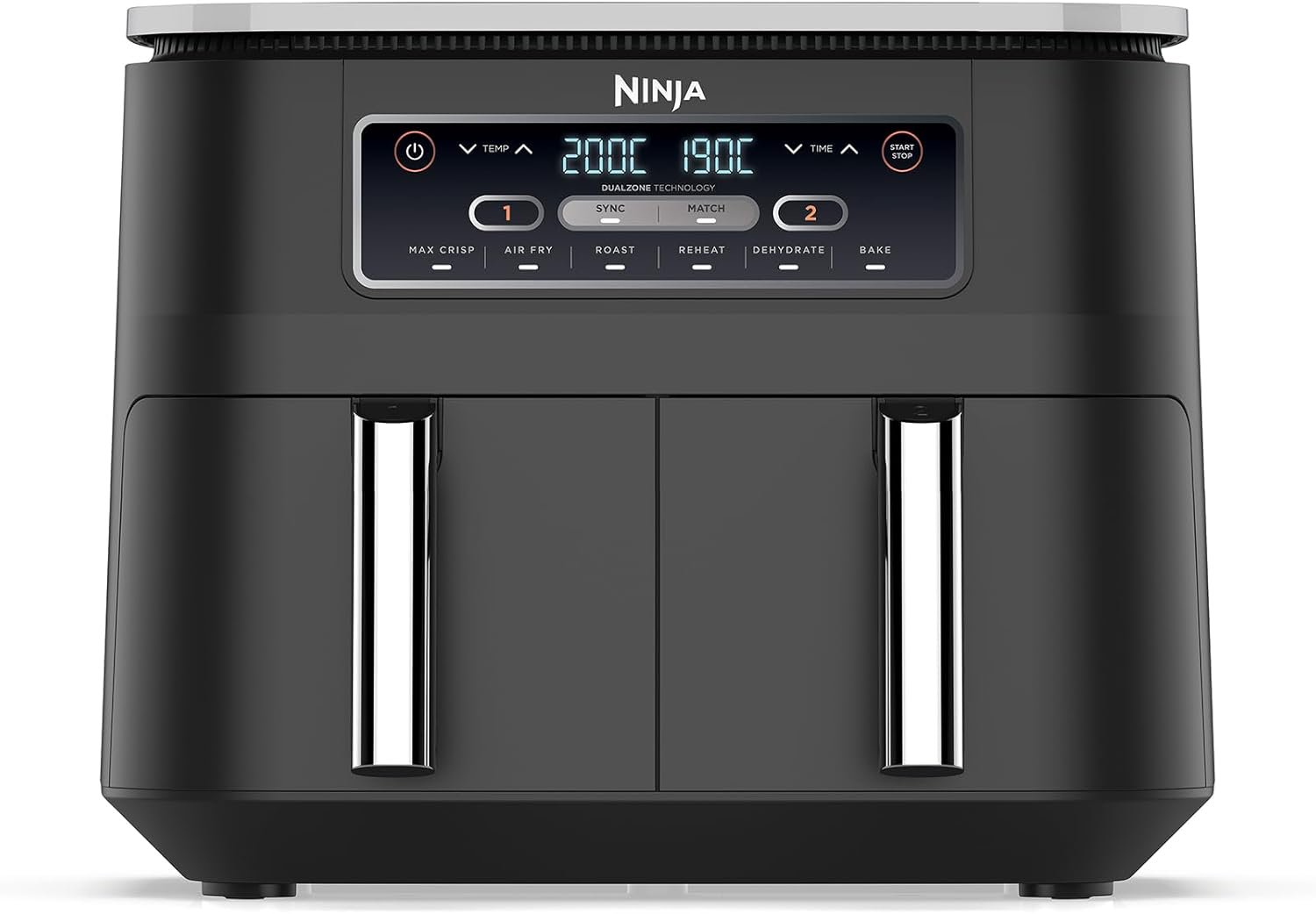 Ninja Foodi Dual Zone Air Fryer, 2 Basket Airfryer, 7.6L XL Large Drawer Capacity, 6 Functions, Non Stick Ceramic, AF300ANZ, Grey