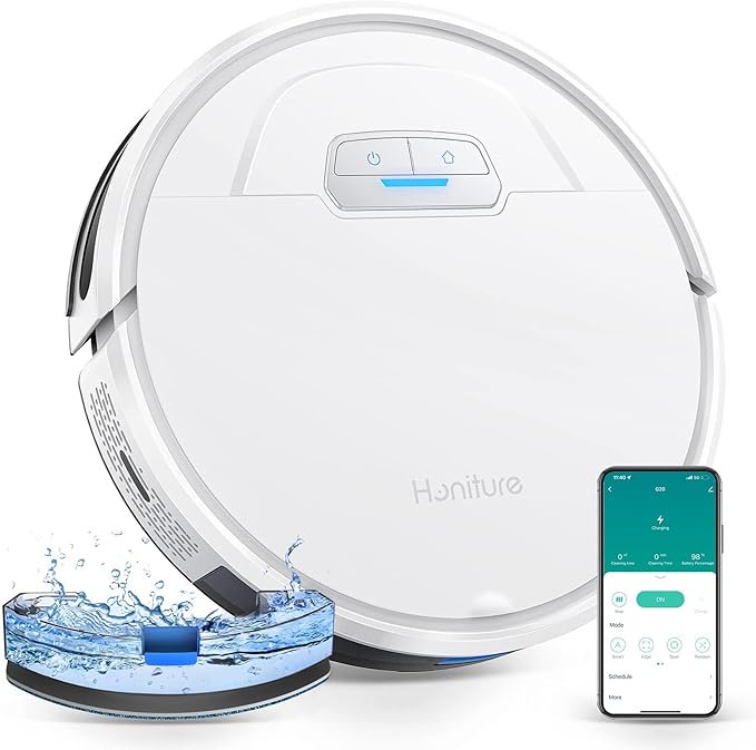 HONITURE G20 Robot Vacuum Cleaner, 4000Pa Strong Suction, 3 in 1 Robot Vacuum and Mop Combo, 7.6cm Thin, Control App/Wi-Fi/Alexa/Remote, Ideal for Pet Hair/Carpet/Hard Floor
