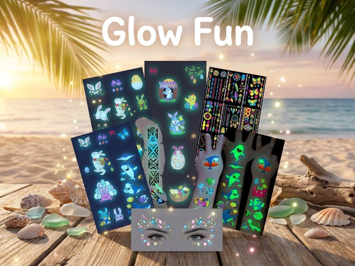 The BUYLONG Easters Temporary Tattoos come packed with fun and creativity, perfect for the kids in your life! Each set includes 10 sheets of vibrant tattoos featuring beloved Easter themes such as bunnies, eggs, and chicks. Ideal for Easter parties, these tattoos glow in the dark, adding an exciting twist that will delight children. They're versatile, easy to apply, and can stick to not only skin but also smooth surfaces like glass and gift boxes. A great addition to Easter baskets or as party favors, these tattoos make celebrations unforgettable.